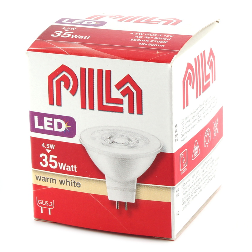 LED žárovka PILA LV má patici GU5,3 a výkon 4,5W. Má tvar reflektoru a je vhodná jako náhrada za klasickou 35W žárovku. Světlo, které vydává je teplá bílá a je vhodné do prostorů, kde potřebujete dlouhodobě pracovat.