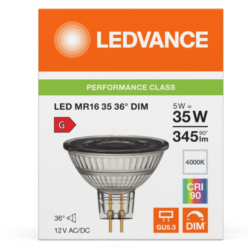 LED zdroj LEDVANCE MR16 35 36° DIM P 5W 345lm 940 GU5.3
