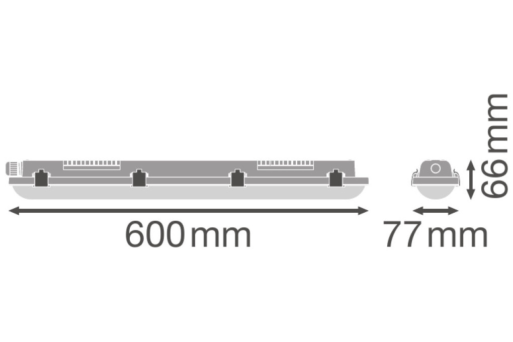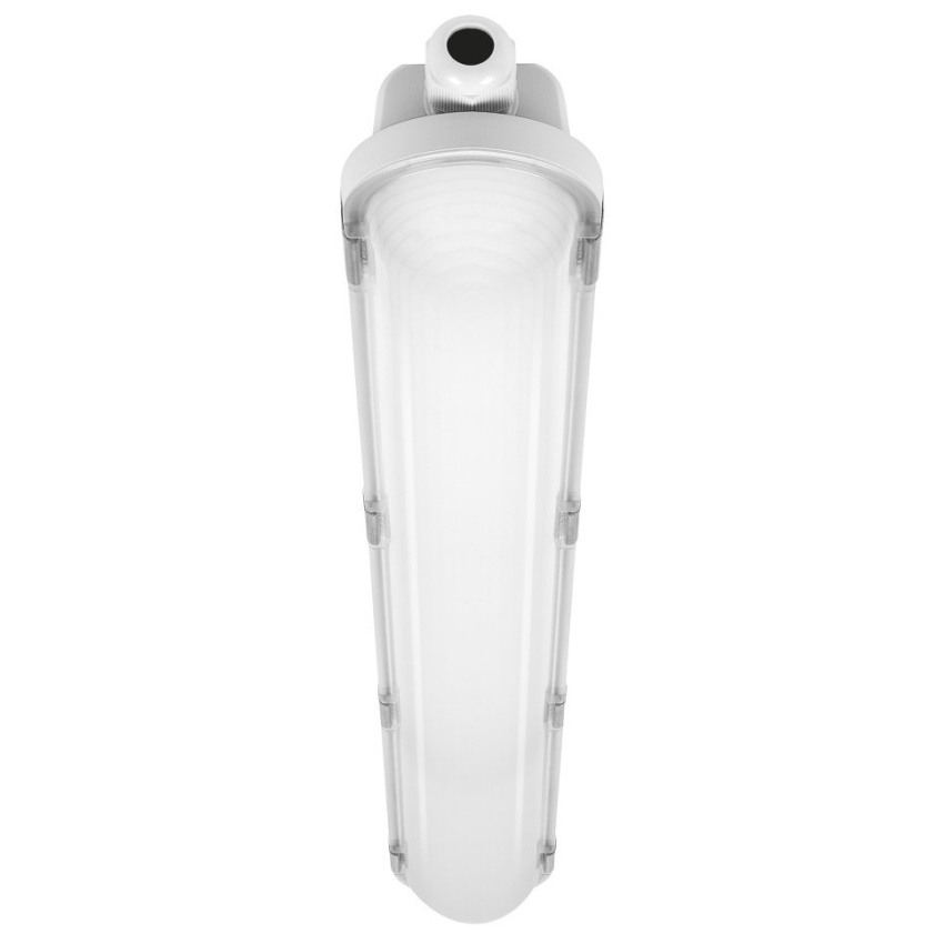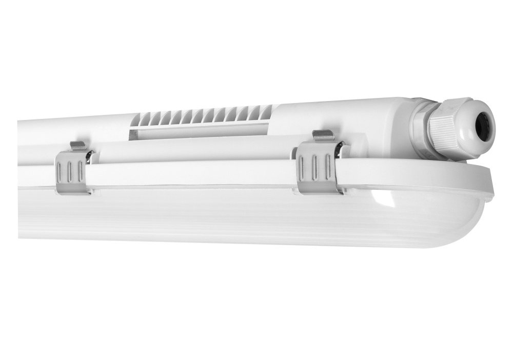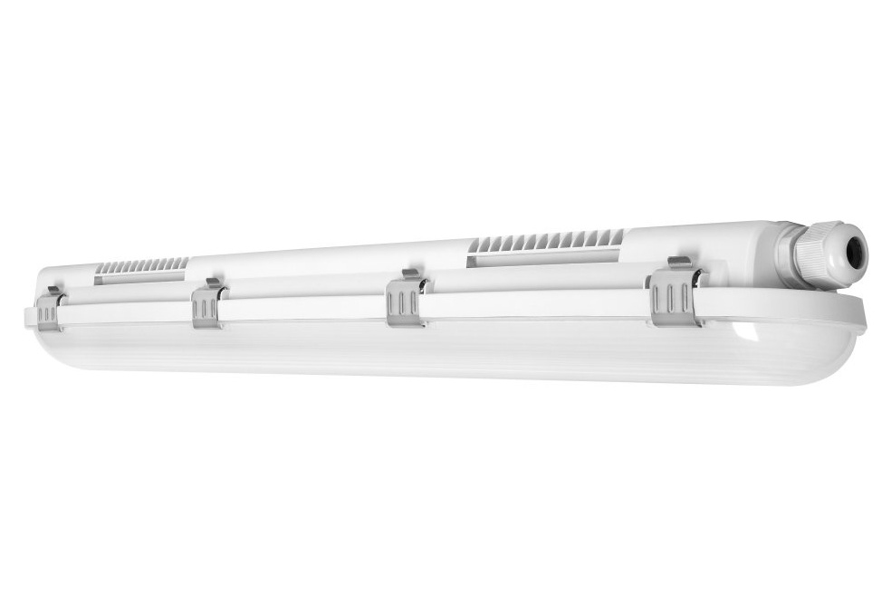 Prachotěsná svítidla, klasický tvar. Vlastnosti produktu: Vysoká světelná účinnost: až 120 lm/W. Stupeň krytí: IP65. Vyzařovací úhel: 115°. Možnost kabelového propojení. Polykarbonátové pouzdro. Výhody produktu: Rovnoměrně rozložené světlo. Úspora energie až 50 % (ve srovnání s osvětlením se zářivkami). Snadná instalace, pro zapojení není třeba žádného nářadí. 3letá záruka. Druh použití: Ideální pro průmyslová a skladovací zařízení. Parkoviště a podchody. Garáže. Dílny, montážní linky. Výbava / příslušenství: Včetně svorek z nerezové oceli s bezpečnostními šrouby. Včetně upevňovacího příslušenství (sada pro zavěšení, sada ochrany před odcizením).