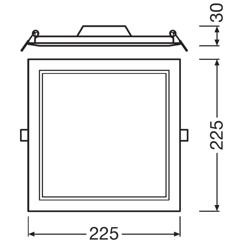 Plochá svítidla Downlight s integrovaným předřadníkem, čtvercová. Vlastnosti produktu: Malá viditelná fazeta. Připojovací krabice s bezšroubovou svorkovnicí pro připojení bez nutnosti použití nástrojů. Světlovod z nežloutnoucího PMMA zaručující dlouhou životnost. Výhody produktu: Velmi tenké pouzdro. Malá instalační hloubka. Vysoký měrný světelný výkon. Úspora energie až 60% (ve srovnání se svítidly používajícími úsporné zářivky). Velmi homogenní světlo. Funkční design. Snadná instalace díky integrovanému ovladači. Druh použití: Přímá náhrada za svítidla s kompaktními zářivkami. Všeobecné osvětlování. Veřejné prostory. Schodiště. Chodby. Vestibuly. Prodejny. Výbava / příslušenství: Rámy pro povrchovou montáž k dispozici jako příslušenství.