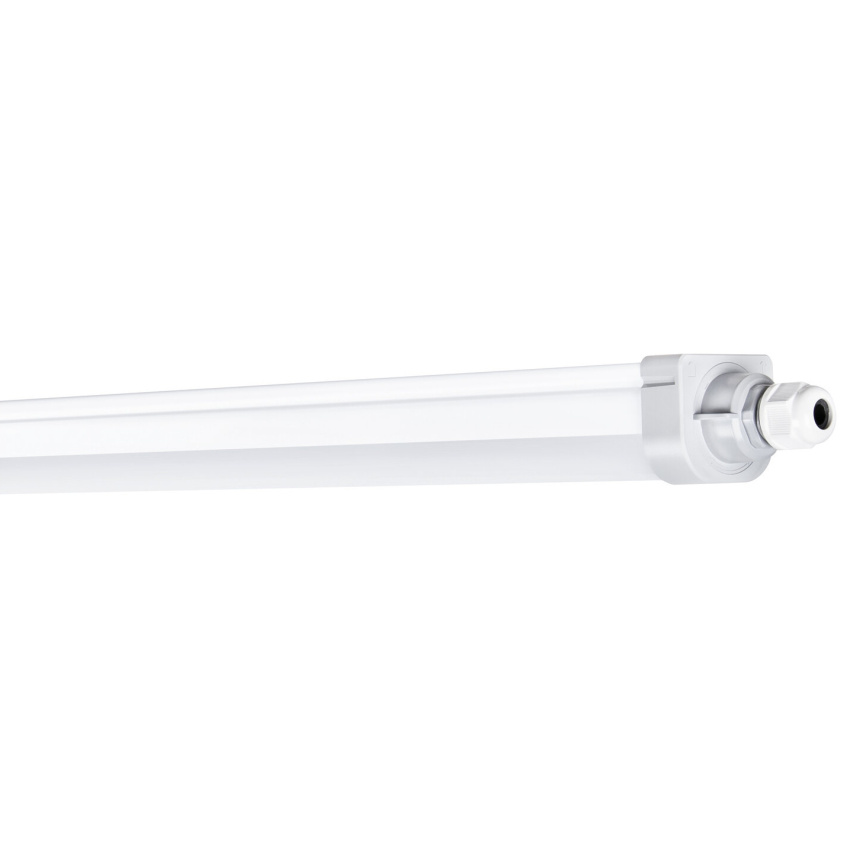 Moderní vodotěsná svítidla s průchozím zapojením a přepínáním lumenů. Vlastnosti produktu: Je k dispozici možnost výběru výkonu mezi 2 hodnotami lumenů. Předinstalovaná průchozí kabeláž 3 × 1,5 mm². Životnost (L80/B10): až 50 000 h (při 25 °C). Vysoký světelný výkon: až 123 lm/W. Polykarbonátové pouzdro IP66 a IK08. Vyzařovací úhel: 120°. Výhody produktu: Vysoce univerzální díky dostupným verzím výběru výkonu, které umožňují 2 různé hodnoty světelného toku. Výborně použitelný ve větších instalacích díky předinstalovanému průchozímu vedení (3x1,5 mm²). Snadný přístup ke svorkovnici díky šroubovací koncovce. Elektrické propojení bez použití nářadí díky zasouvacímu konektoru. Rovnoměrně rozložené světlo. 5letá záruka. Druh použití: Ideální pro průmyslová a skladovací zařízení. Parkoviště a podchody. Garáže. Dílny, montážní linky. Výbava / příslušenství: Včetně svorek z nerezové oceli s bezpečnostními šrouby. Včetně upevňovacího příslušenství (sada pro zavěšení, sada ochrany před odcizením).