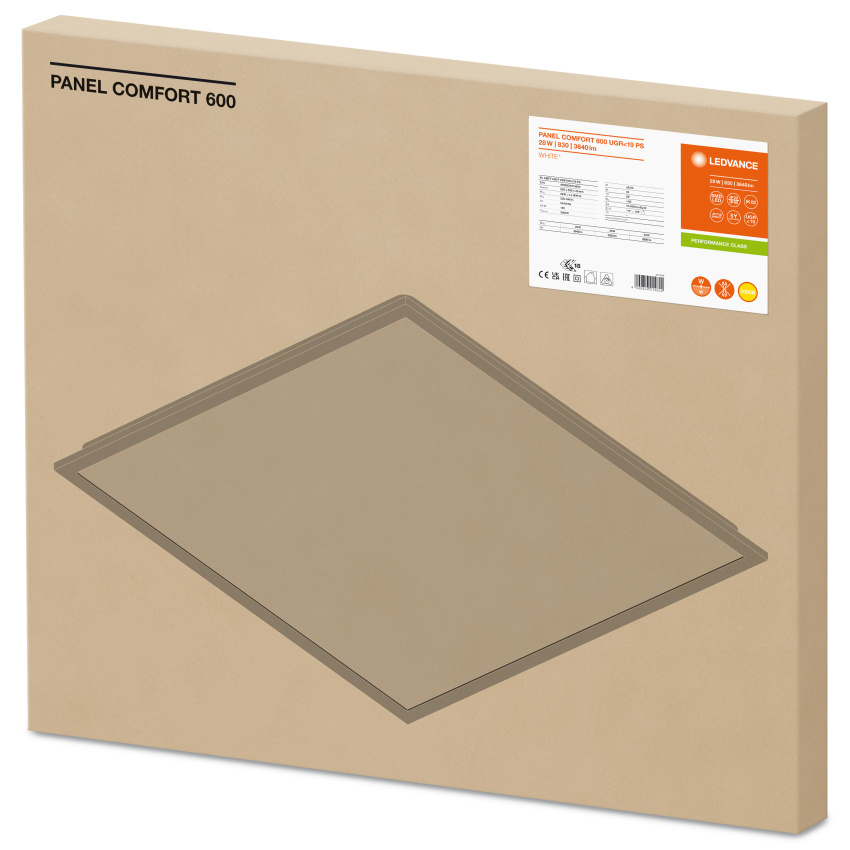 Čtvercová vestavná panelová svítidla s funkcí power select (PS) a nízkým oslněním, pro stropní systémy 600 x 600 mm. Vlastnosti produktu: Rám z protlačovaného hliníku. Polystyrenový difuzor. 5pólová svorkovnice, průřez kabelu do 5 x 2,5 mm². K dispozici jsou verze svítidel s ovladačem DALI-2 připraveným na IoT. K dispozici je provedení s CRI 90. Životnost (L80/B10): 70 000 h (při 25 °C). Výhody produktu: Vysoce univerzální díky volitelným stupňům výkonu (Power Select - PS) na driveru. Elektrické propojení bez použití nářadí díky zasouvacímu konektoru. Možnost průchozí kabeláže pomocí dodané připojovací krabice. Energeticky úsporné díky vysoké účinnosti systému: až 130 lm/W. Spolehlivé snížení oslnění (UGR ≤19). Vysoká barevná konzistence s SDCM 3. V provedení s DALI jsou k dispozici rozšířené služby jako např. sledování spotřeby energie a dálková údržba. Externí předřadník pro dodatečnou flexibilitu a snadnou instalaci. Světlo s nízkou úrovní blikání díky speciálnímu předřadníku. Možnost nouzového osvětlení díky nouzovému modulu LEDVANCE. 5letá záruka. Druh použití: Přímá náhrada za vestavná svítidla se zářivkami. Kanceláře, konferenční místnosti. Recepce, vstupní haly, chodby, výtahy. Vhodné pro systémy zapuštěných světel do stropů o velikosti mřížky 600 × 600 mm. Výbava / příslušenství: K dispozici je příslušenství pro několik způsobů montáže. Včetně připojovací krabice s 5 pólovou svorkovnicí. Přiloženo je bezpečnostní lanko pro svítidlo. Předinstalované bezpečnostní držáky. Včetně externího předřadníku. Vhodné pro použití se samostatným nouzovým modulem.