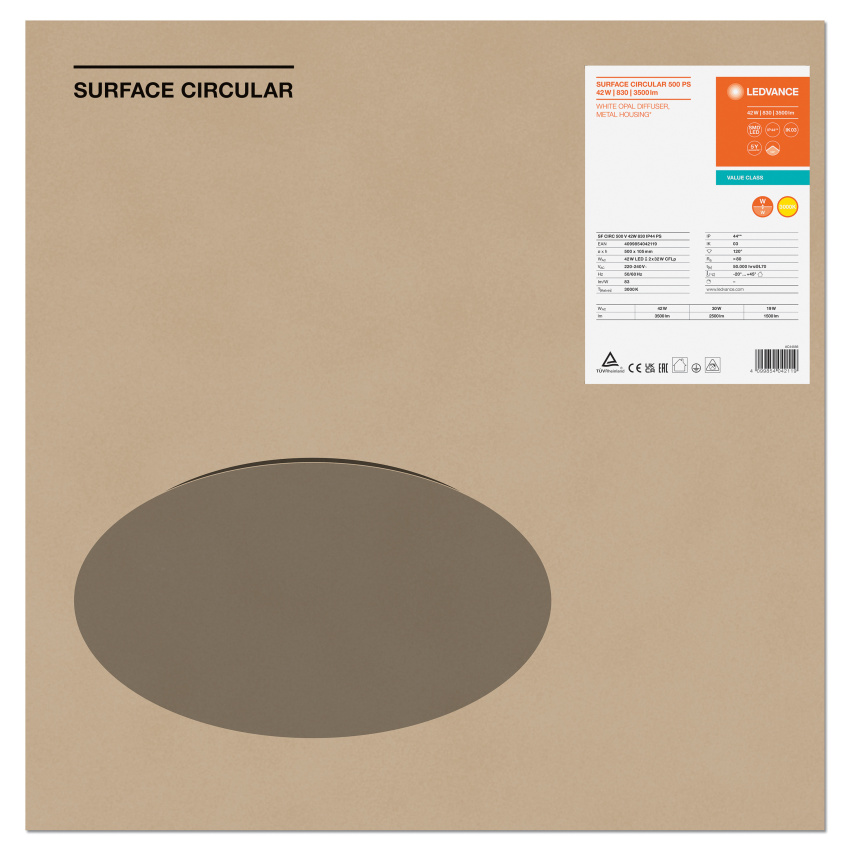SURFACE CIRCULAR 500 PS 42W 830 IP44 PS