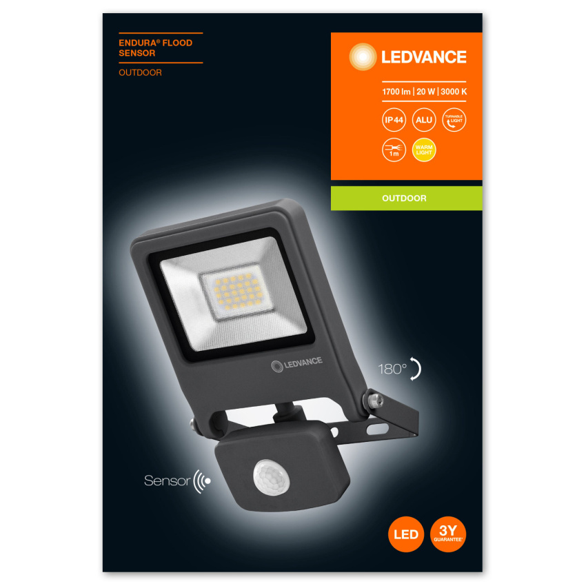 LEDVANCE SVÍTIDLO LED REFLEKTOR ENDURA FLOOD SENSOR 20W 3000K 1700LM DG ČERNÁ
