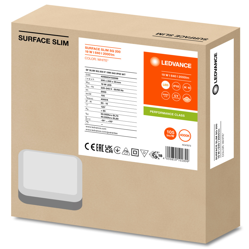 LEDVANCE SVÍTIDLO LED SF SLIM SQ 200 P 19W 840 4000K IP65 PŘIS. HRAN.