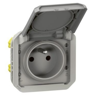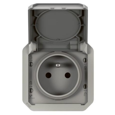 Legrand Plexo New 069551L zásuvka 2P+T s dětskými clonkami, šedá, IP55, pouze přístroj
