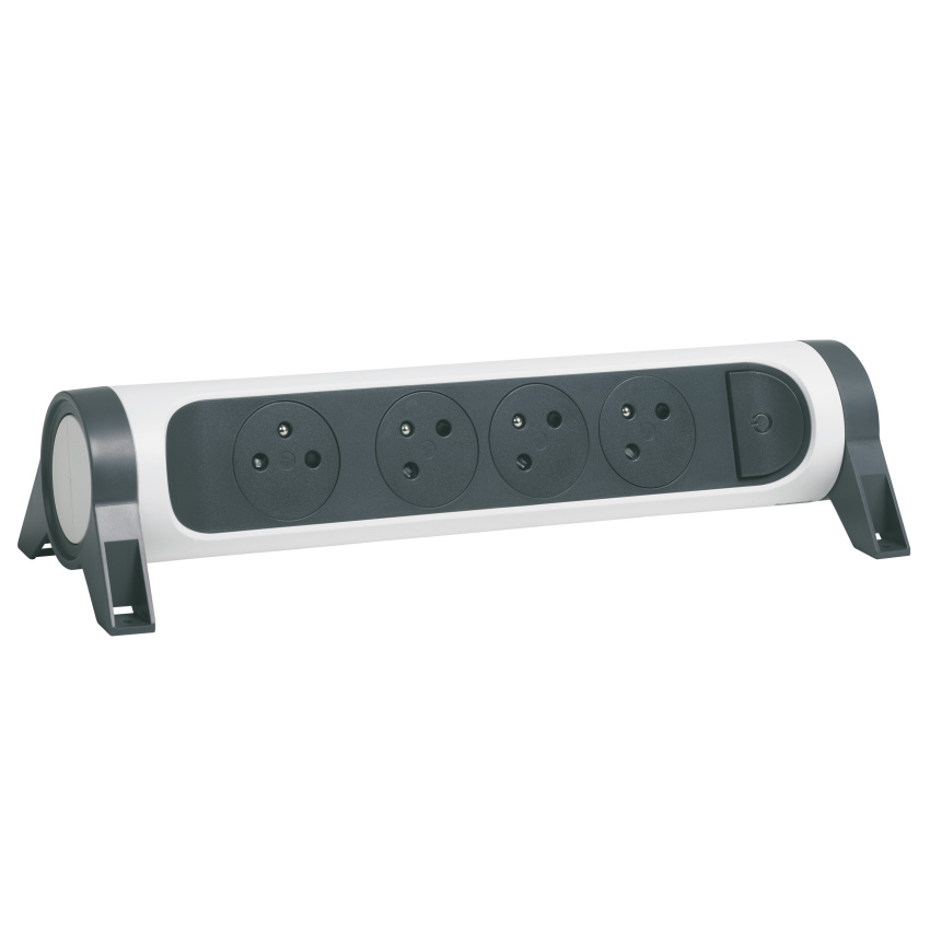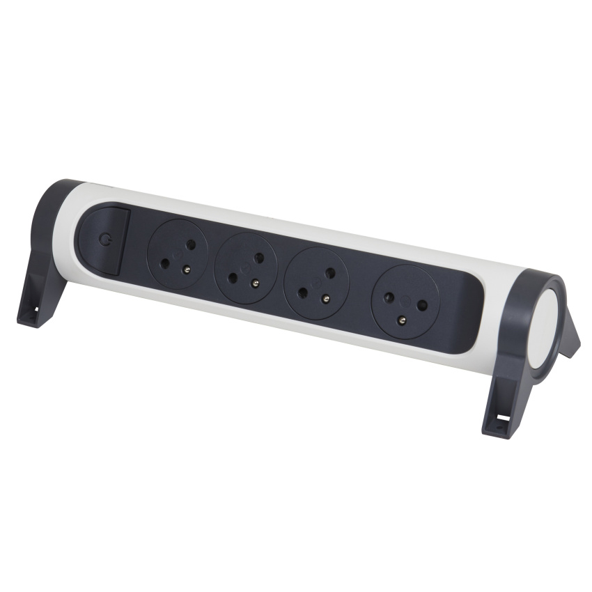 Prodlužovací přívod s válcovým otočným tělem a čtyřmi 2P+T zásuvkami. Díky patentu společnosti Legrand se zarovnaná dna zásuvek zasunou dovnitř až po zastrčení vidlice, tím se dosahuje atraktivního designu a zamezuje hromadění prachu. Pootočené zásuvky poskytují prostor pro připojení i objemnějších nabíječek. Prodlužovací přívod je možné upevnit v horizontální i vertikální poloze a nechybí ani spínač pro vypnutí a zapnutí.