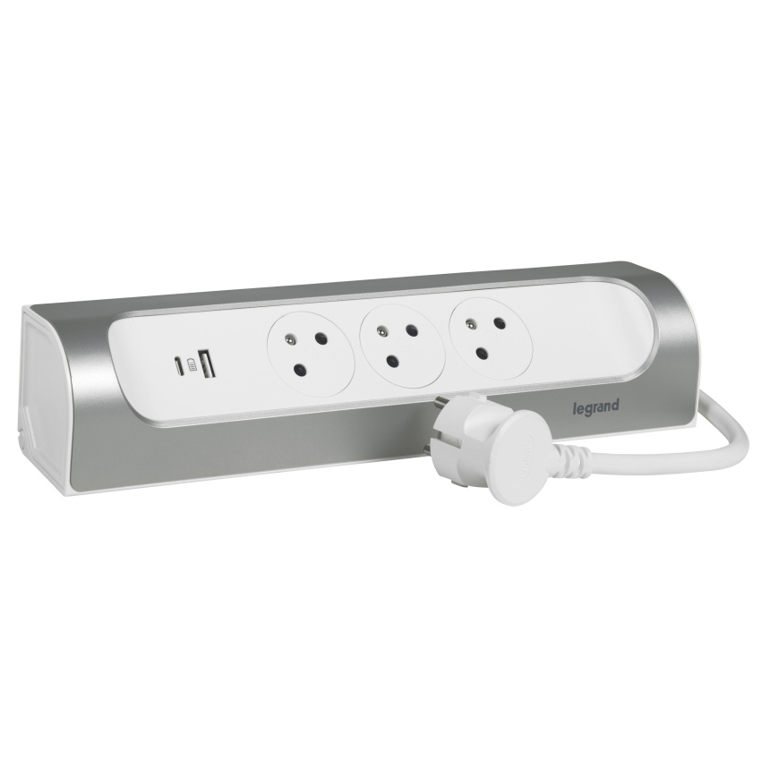 LEGRAND BLOK 49406 ZÁSUVKOVÝ 3X2P+T USB A+C 1M HLINÍK