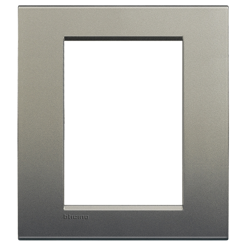 3+3-modulový hranatý rámeček (italský standard). Provedení: matné (Zamak), barva šedá.