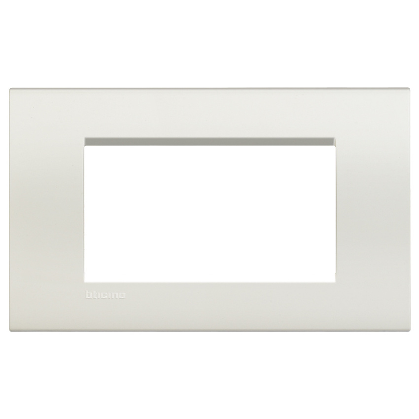 4-modulový hranatý rámeček (italský standard). Provedení: neutrální (polymerový plast), barva bílá.