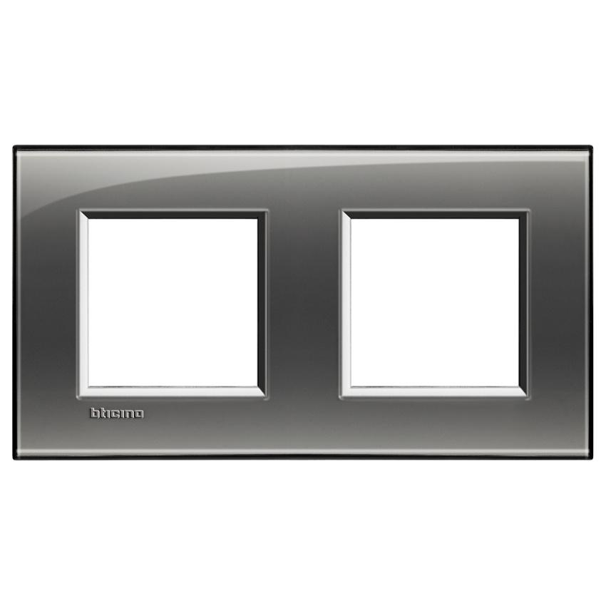 2+2-modulový hranatý rámeček. Osová rozteč: 71 mm. Provedení: kristall (polymerový plast), barva kouřová.