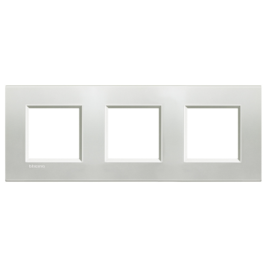 2+2+2-modulový hranatý rámeček. Osová rozteč: 71 mm. Provedení: přírodní (Zamak), barva stříbrná.