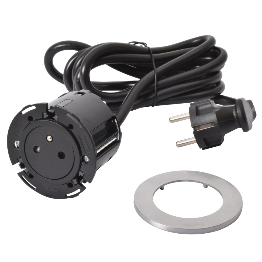 LEGRAND INCARA 654722 ZÁSUVKA ZAPUŠTĚNÁ DISQ 60 2P+T V ČERNA/KOV 2M KABEL S VIDLICÍ 2P+T