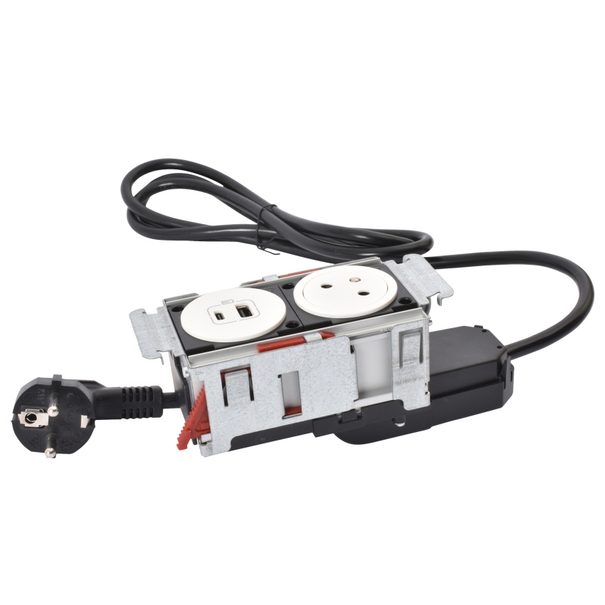 LEGRAND INCARA 654740 BLOK ZÁS. DISQIN ZAPUŠTĚNÝ 2P+T USB A+C BÍLÁ 2M KABEL S VIDLICÍ 2P+T