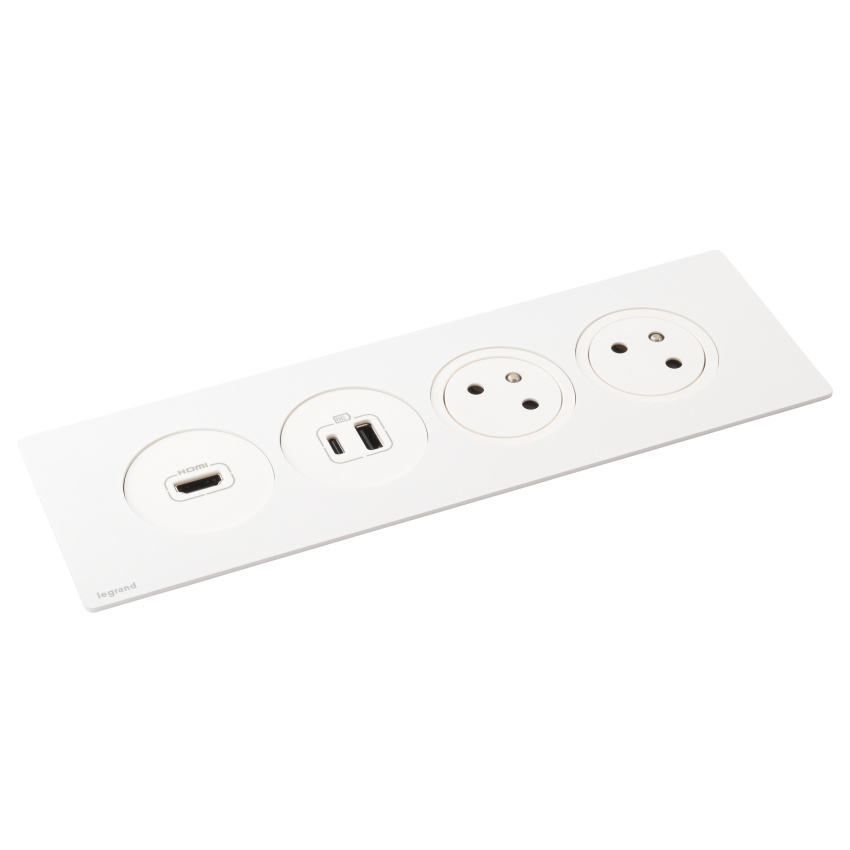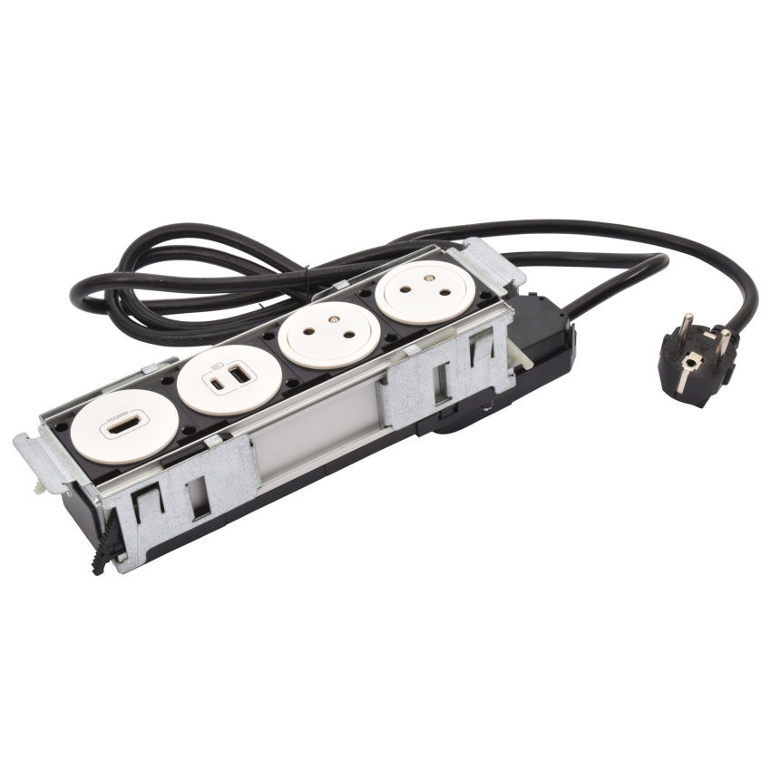LEGRAND INCARA 654742 BLOK ZÁS. DISQIN ZAPUŠTĚNÝ 2X2P+T USB A+C HDMI BÍLÁ 2M KABEL S VIDLICÍ 2P+T