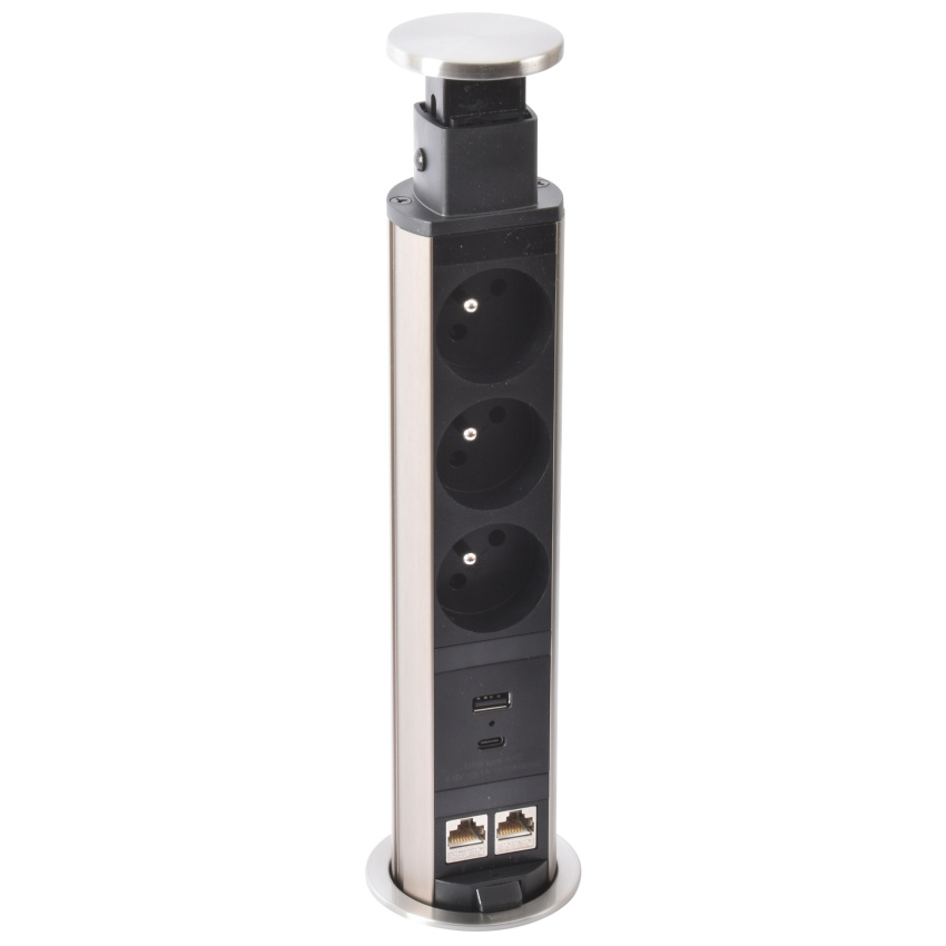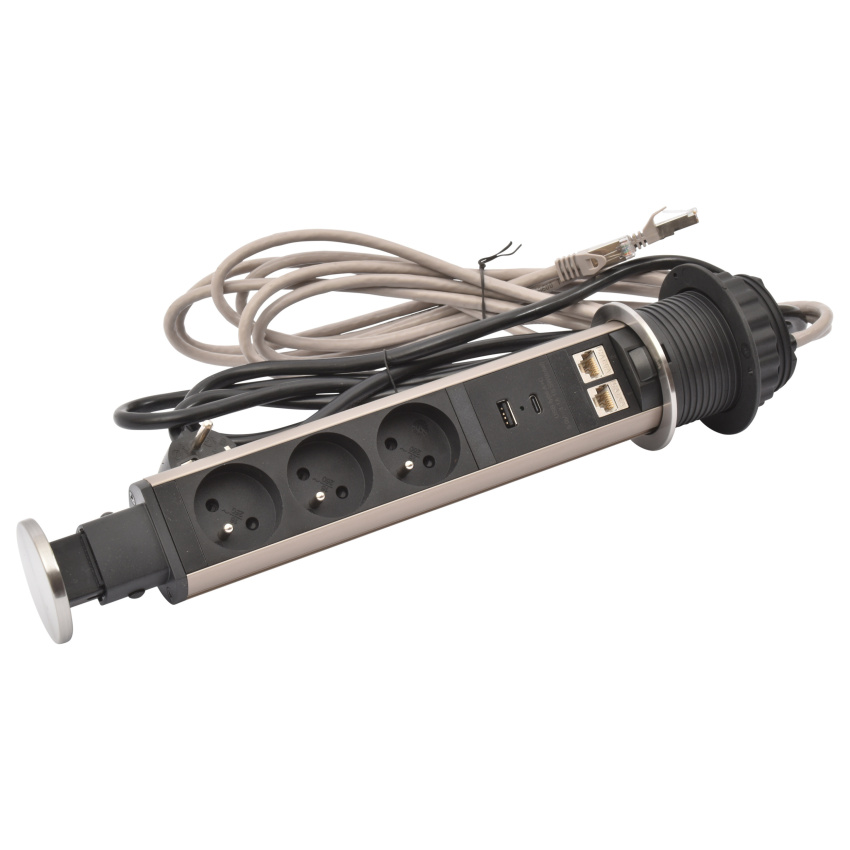 TOWER 60 VÝSUVNÝ ZÁSUVKOVÝ BLOK 3X2P+T USB A+C 2XRJ45 CAT6 FTP 2M KABEL S VIDLICÍ 2P+T TOWER 60 VÝSUVNÝ ZÁSUVKOVÝ BLOK 3X2P+T USB A+C 2XRJ45 CAT6 FTP 2M KABEL S VIDLICÍ 2P+T