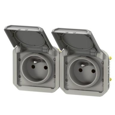 Legrand Plexo New 069562L dvojnásobná zásuvka 2×2P+T horizontální, šedá, IP55, pouze přístroj