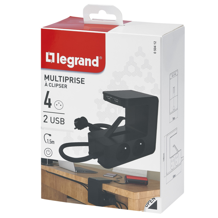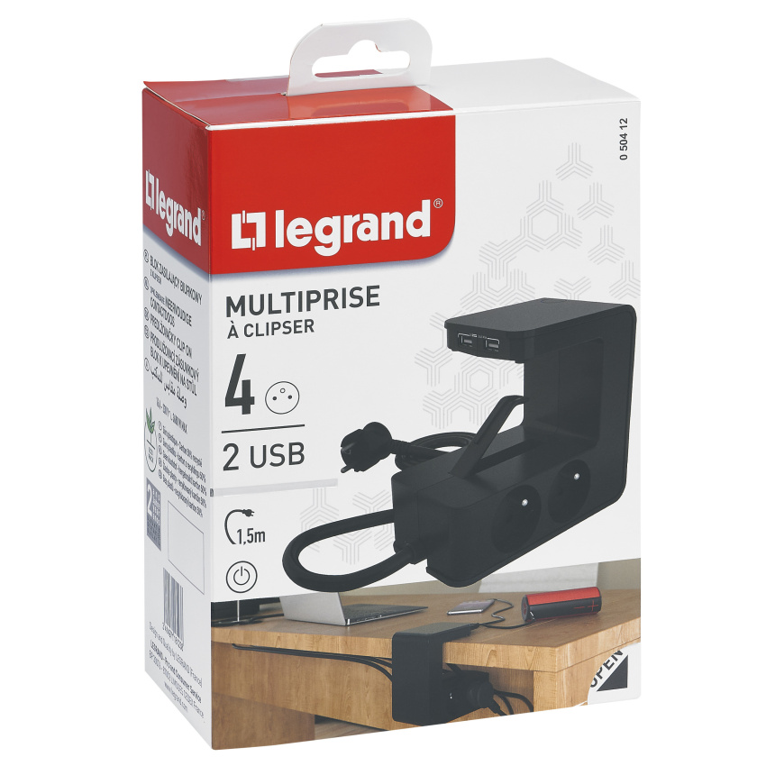 LEGRAND PŘÍVOD PRODLUŽOVACÍ 4X2P+T 2XUSB A ČERNÁ 050412