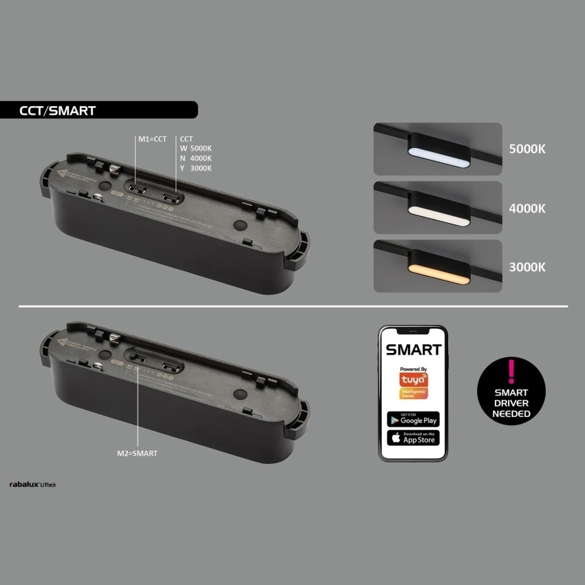 Závěsné svítidlo Rabalux LiTrack Pendant je určeno pro použití v kolejnicovém systému a je osazeno integrovaným LED světelným zdrojem s příkonem 5 W. Svítidlo umožňuje nastavení teploty chromatičnosti v rozsahu 2700 K až 5500 K, přičemž změna barvy světla je možná pomocí DIP přepínače nebo prostřednictvím aplikace v mobilním zařízení. Světelný tok světelného zdroje činí 200 lm, svítidlo je stmívatelné, napájeno napětím DC 24 V a má stupeň krytí IP20. Konstrukce zahrnuje černé hliníkové tělo a průhledné plastové stínítko.