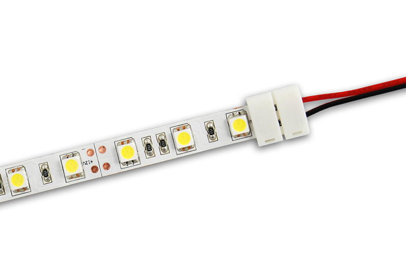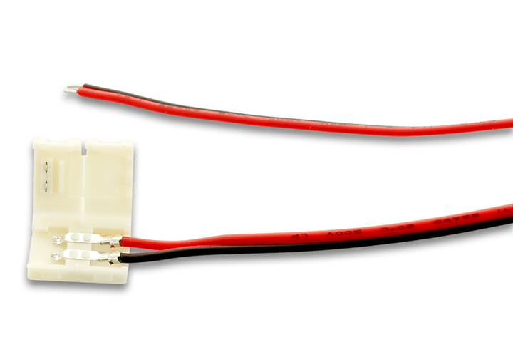 McLED Připojovací konektor jednobarevných LED pásků šíře 8 mm, 2 piny. Konektor využijete ke snadnému propojení jednobarevných LED pásků o šíři 8 mm s napájecími zdroji, které mají na výstupu svorkovnici nebo kabely (zdroje jsou tedy bez konektoru). Připojovací konektor lze použít na LED pásky s max. 60LED/m.