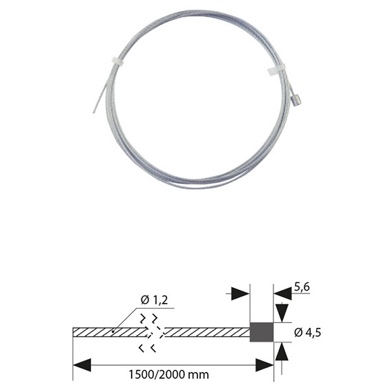 Závěsné ocelové lanko, zakončené válečkem 4,5x5,5 mm, délka 1,2x2000mm.