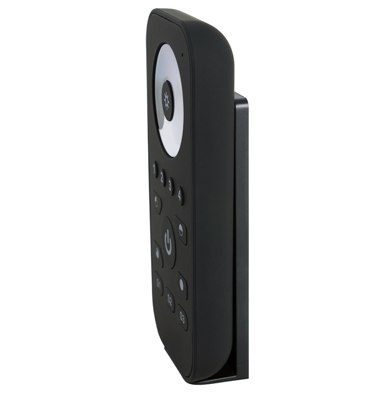 McLED RF dálkový ovladač pro řízení jasu (stmívání) jednobarevných LED pásků umožňuje nezávislé i společné řízení až 4 skupin RF přijímačů (nejsou součástí), každá skupina může mít neomezeně přijímačů. Rozměry ovladače: 120×55×17mm, napájení 3xAAA baterie (nejsou součástí), dosah cca 20m. Součástí balení magnetický držák, který lze upevnit pomocí 3M pásky, nebo vrutů (obojí součástí).