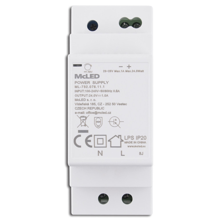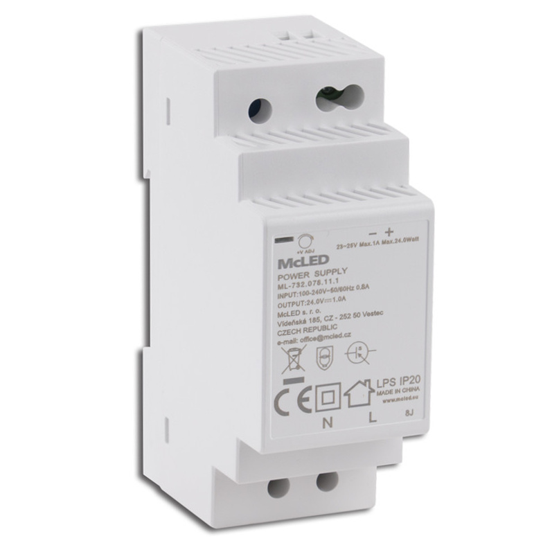 MCLED ZDROJ NAPÁJ. 24W DC24V/1A IP20 NA DIN LIŠTU ML-732.078.11.1