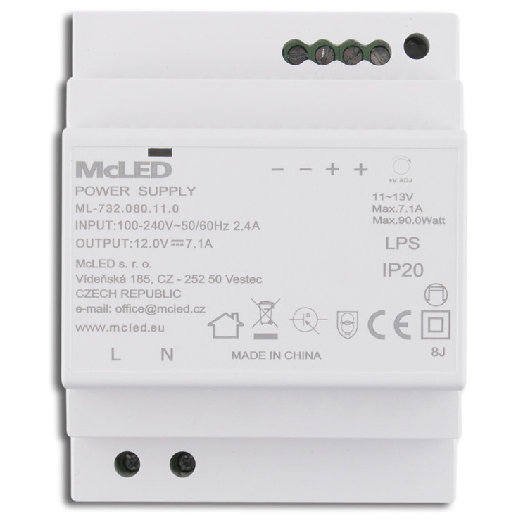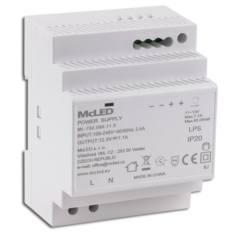 MCLED ZDROJ NAPÁJ. 90W DC12V/7,1A IP20 NA DIN LIŠTU ML-732.080.11.0