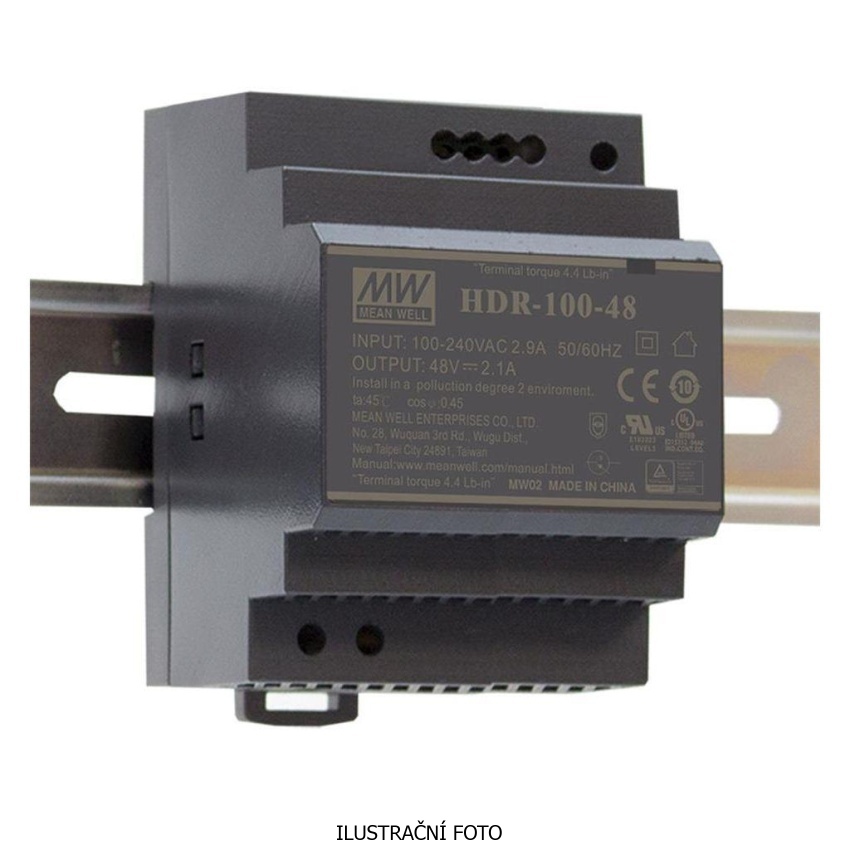HDR-100-12N ZDROJ NA DIN LIŠTU 12V DC 7,5A 90W