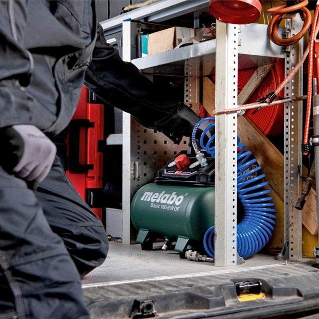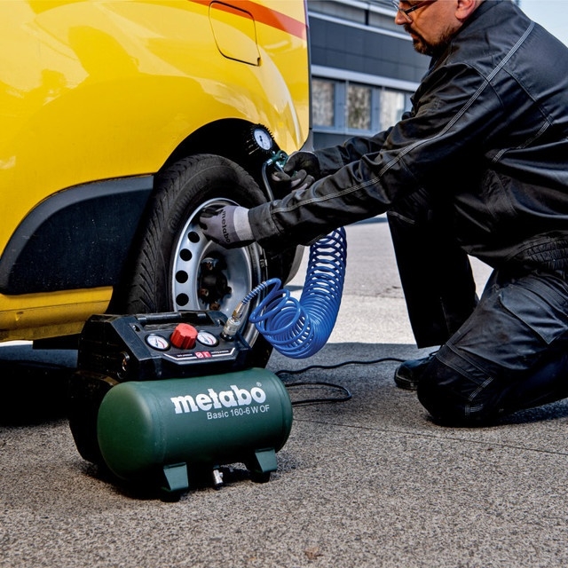 Univerzální přenosný kompresor Basic 160-6 W OF 1x univerzální rychlospojka Přenosný bezolejový kompresor Metabo Basic 160-6 W OF nabízí solidní výkon pro menší a středně náročné úkoly v dílně, na stavbách nebo v domácnosti. Je ideální pro příležitostné a přerušované práce, kde je potřeba mobilita, jednoduchá obsluha a nízká hlučnost. Bezolejový provoz navíc nabízí sníženou potřebu údržby.