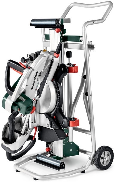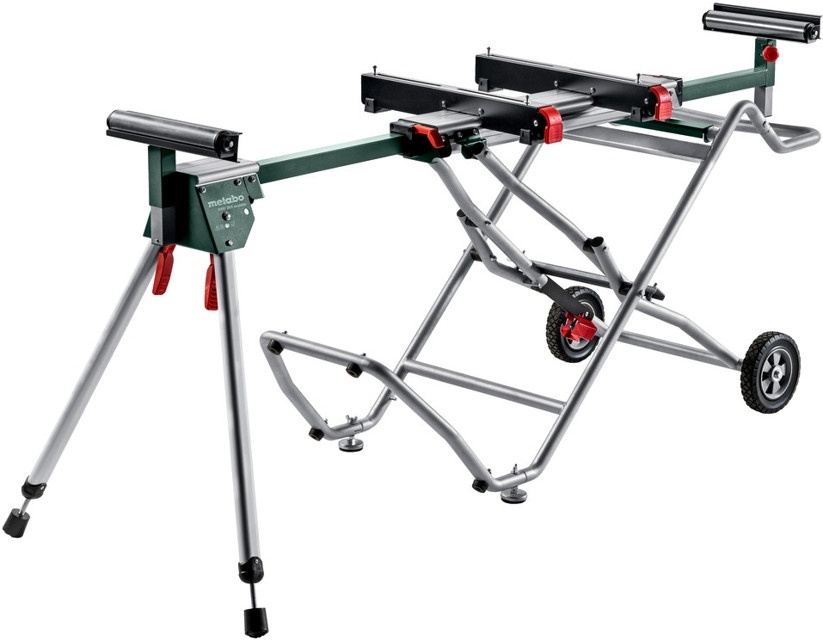 Mobilní podstavec s kolečky KSU 251 pro kapovací a pokosové pily Robustní podstavec pro kapovací pilu s funkcí pojezdu pro mobilní použití i s namontovanou pilou Vytahovatelné dosedací plochy obrobku s kolečky a sklopným dorazem pro přesné sériové řezy Jednoduchý sklápěcí mechanismus (lze sklopit i s namontovanou pilou) Rozšíření stolu s dvojitou podpěrou pro těžké obrobky Vyrovnání výšky pomocí stavitelných nožek Prostorově úsporná skladovací poloha Technické parametry stojanu Celková délka: 121 cm - 240 cm Výška podložek pro obrobek: 86cm Max. Zatížení ve střední části: 180 kg