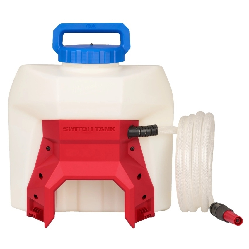 Nádrž na vodu MILWAUKEE® M18™ SWITCH TANK™ s objemem 15 litrů je plně kompatibilní se základní jednotkou SWITCH TANK™ G2. Je ideální pro efektivní přívod vody při řezání betonu a jádrovém vrtání, ale také pro oplachování kalů, ploch a zařízení. Poloprůhledný design nádrže s měřicí stupnicí umožňuje snadnou kontrolu množství kapaliny. Díky velké rukojeti víka a širokému otvoru je plnění nádrže rychlé a pohodlné. Výměnná hadice je vybavena standardní rychlospojkou pro připojení k zahradní hadici a postřikovací tryskou, která je kompatibilní se standardním zahradním příslušenstvím. Integrovaný filtr zabraňuje vniknutí nečistot do nádrže, čímž zajišťuje spolehlivý provoz.