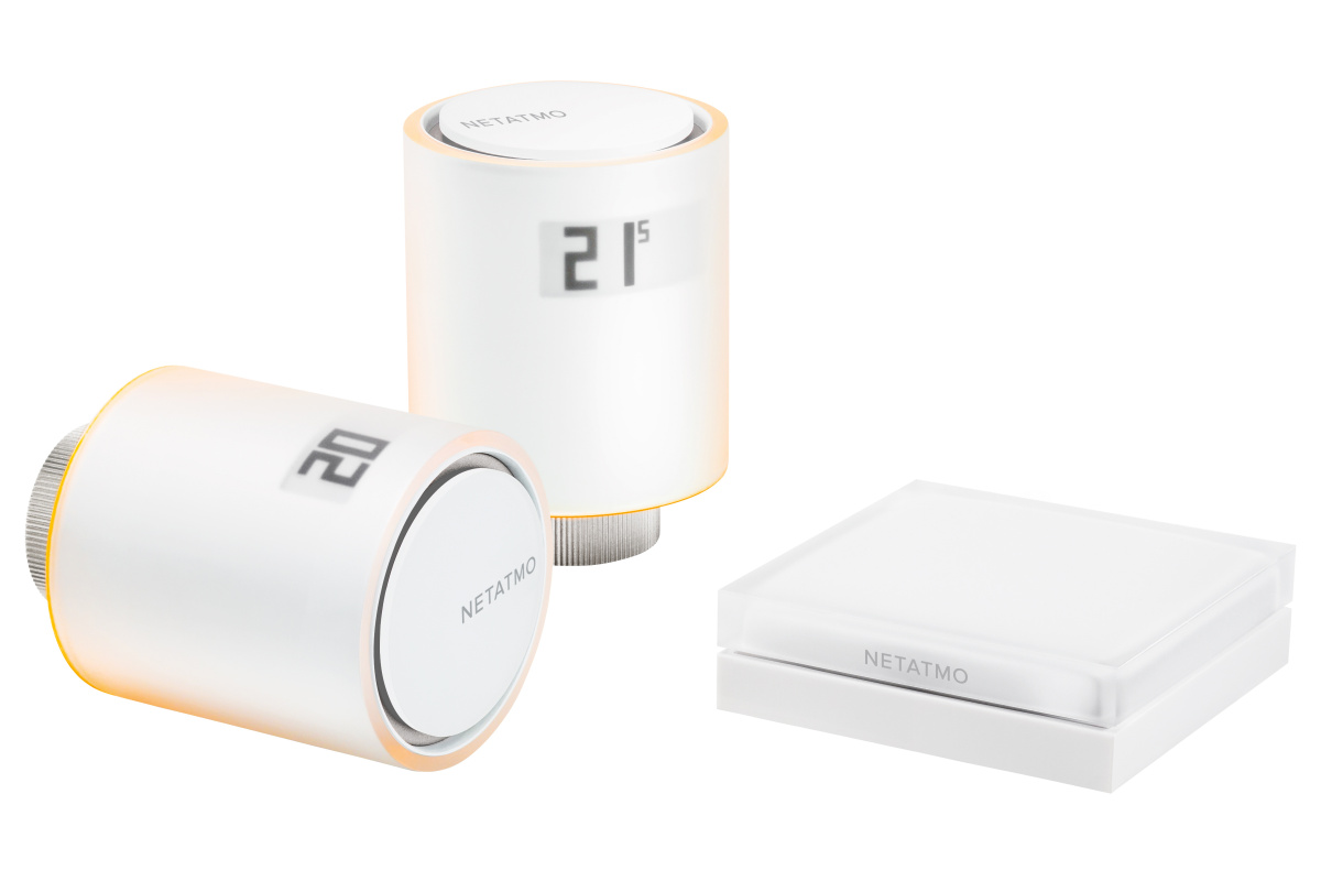Sada 2ks hlavic (baterie součástí dodávky) a komunikační brány - využívá aplikace Netatmo Energy. Funkce otevřeného okna (při náhlém poklesu teploty se ventil uzavře), dodáváno s 10 adaptéry pro ventily. Komunikační relé se zapojuje do zásuvky 230V. Radiátorový ventil je otevírán na základě definovaných topných programů. Používá samoučící režim - zatápí s předstihem tak aby požadovaná teplota byla dosažena včas s minimálními výkyvy. Lze doplnit o dalších 18 hlavic NAV-PRO.