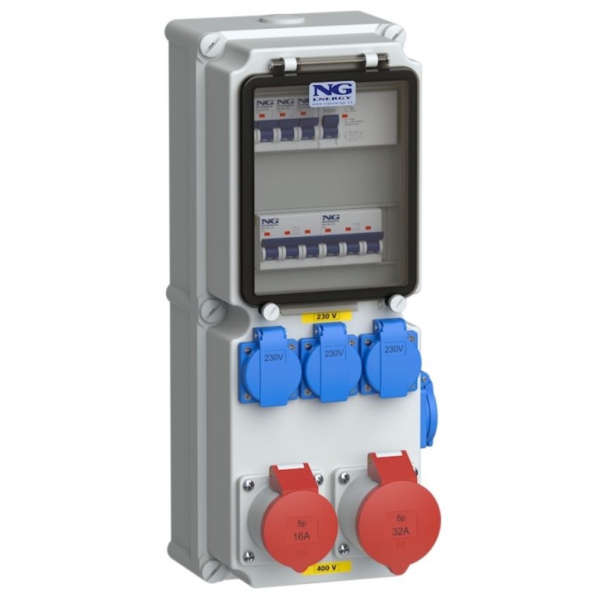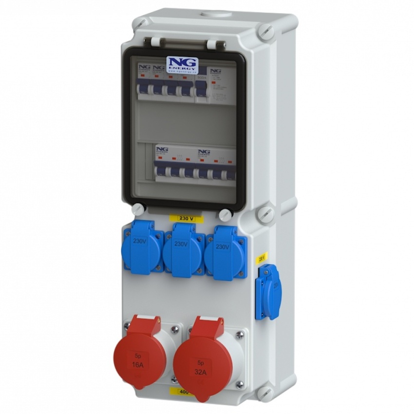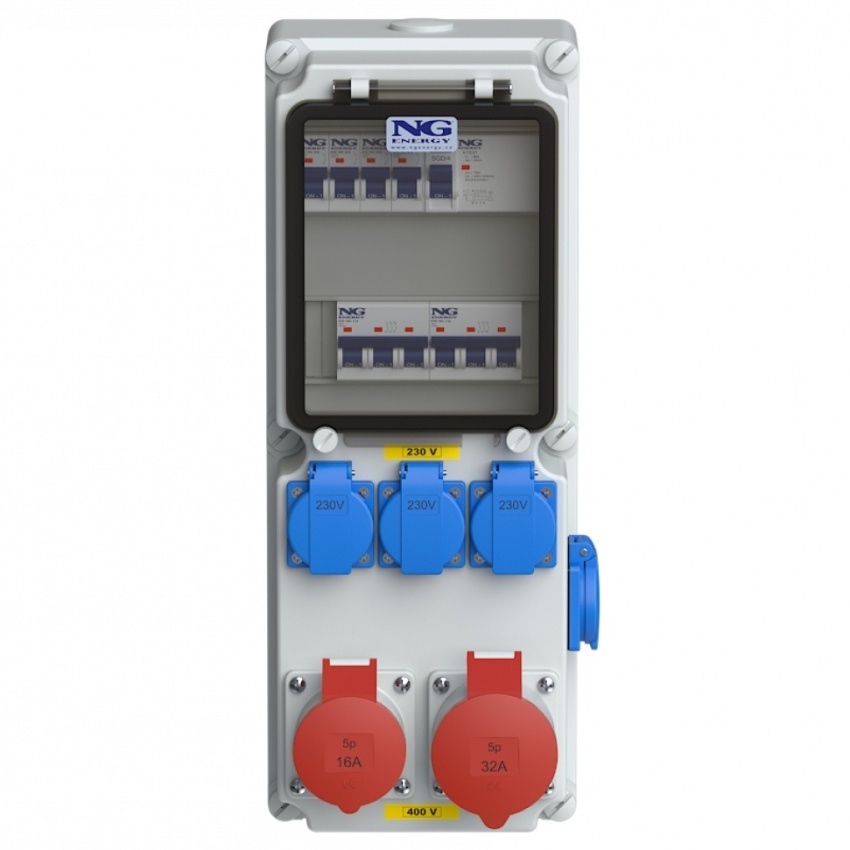 NG ENERGY KOMBINACE ZÁS. SC 53 343 E.01 1X CEE 32A 5P 400V, 1X CEE 16A 5P 400V, 4X16A 230V, CHRÁN
