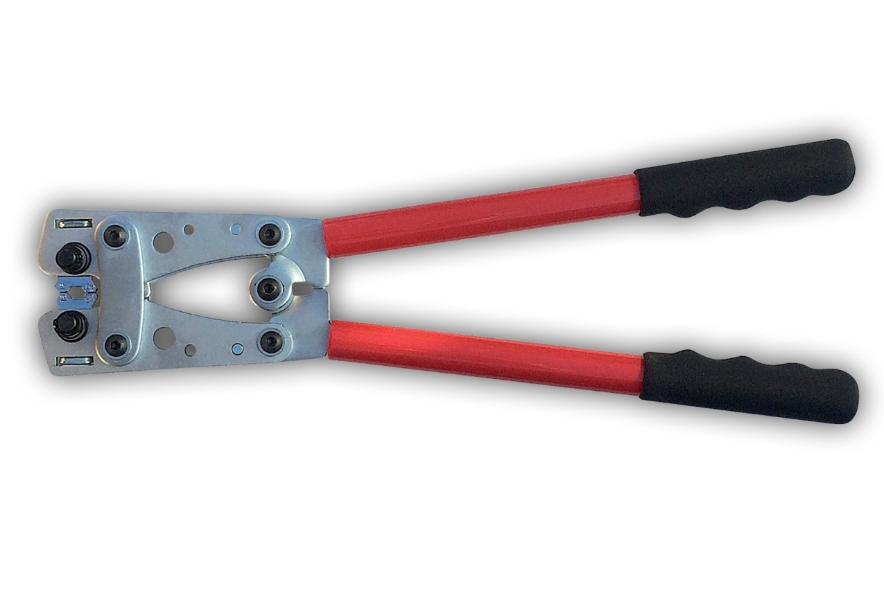 Lisovací kleště na kabelová oka a spojky, se zabudovanými otáčivými profilovými koly. Šestihranné lisování 6 – 50 mm2.