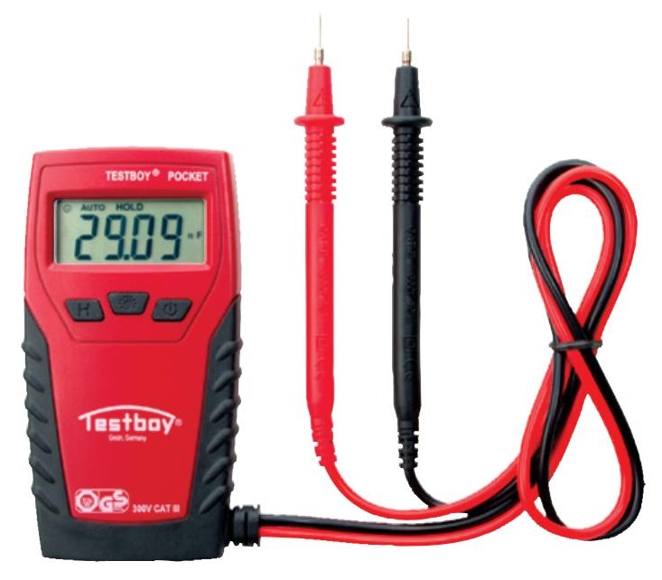 Digitální multimetr Testboy Pocket Testboy Pocket je odolný a velmi výkonný multimetr pro použití v nepříznivých podmínkách. Díky velkému LCD displeji a funkci Data Hold jsou výsledky měření snadno čitelné. Funkce Auto Range usnadňuje uživateli přepínání rozsahů měření. Díky jednoduché obsluze je Testboy Pocket vhodný pro každého servisního technika