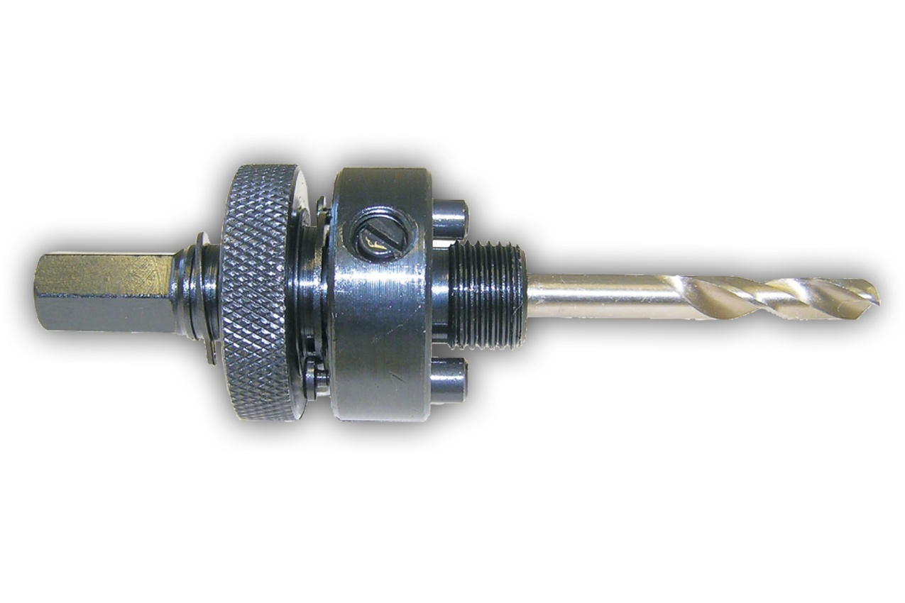 Upínání k bimetalovým korunkám, šestihran 11 mm, pro korunky průměr 14-30 mm, dodáváno včetně středícího vrtáku v délce 70 mm.