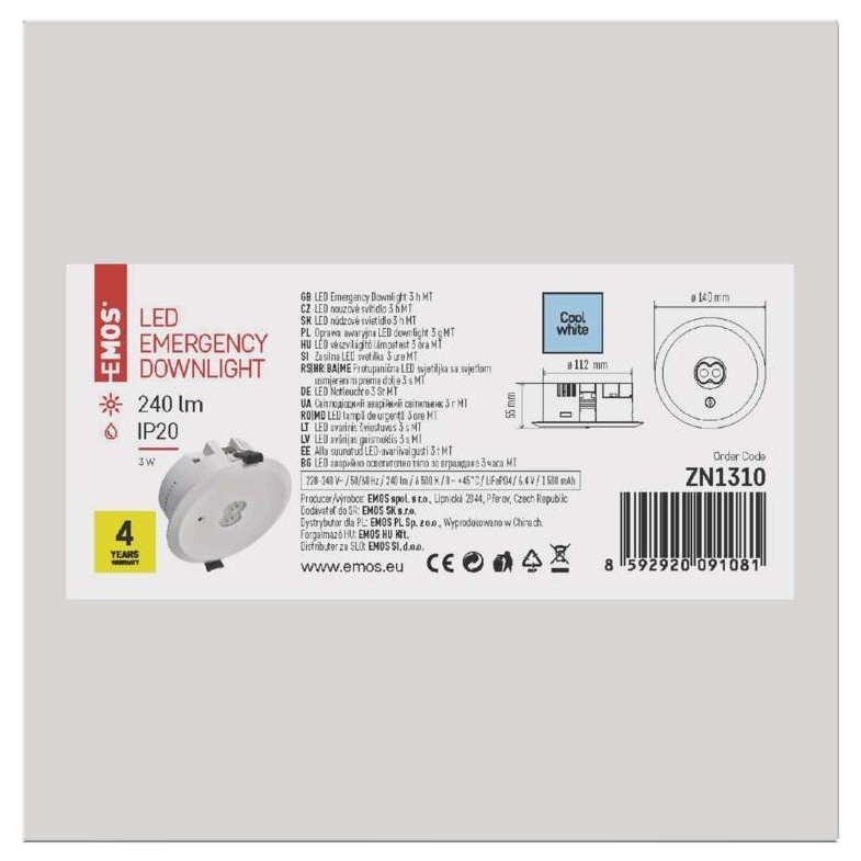 EMOS SVÍTIDLO NOUZOVÉ 3W 240LM 3H MT, ZN1310