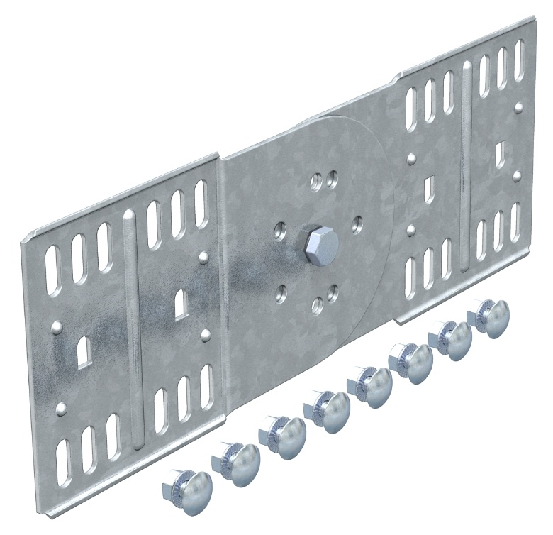 Kloubové spojky RGV 110 FS pro kabelové žlaby a přepážky s výškou bočnice 110 mm.