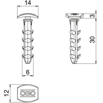 OBO HMOŽDINKA NÁSUVNÁ DELTA-PUSH NÁSUVNÁ PRO BEZŠROUBOVOU MONTÁŽ DP D 30 30X6X6MM 2351670