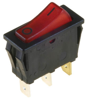 Spínač kolébkový 250V 16A 1x spínací, červeně podsvícený