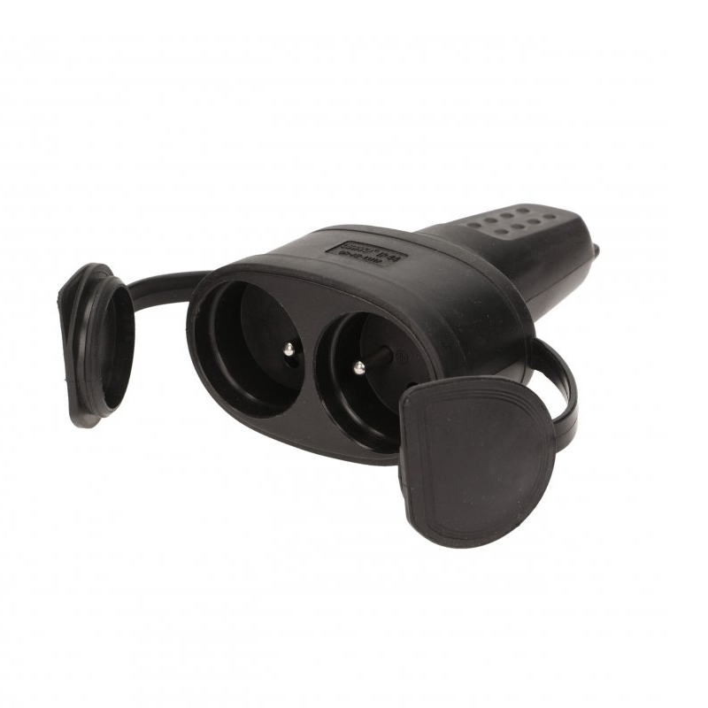 ORNO ZÁSUVKA DVOJITÁ GUMOVÁ PŘENOSNÁ S ÚCHYTEM OR-AE-13117