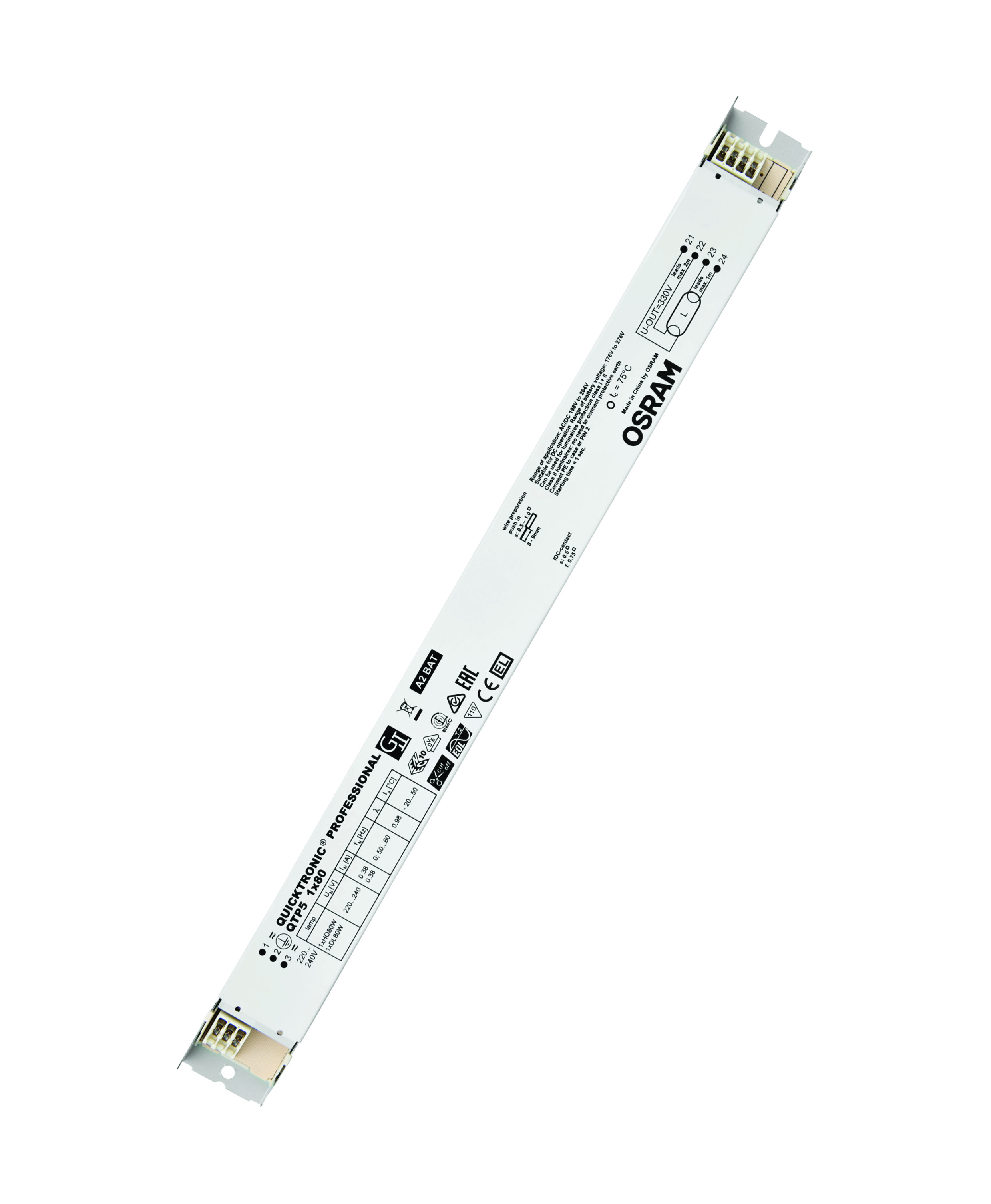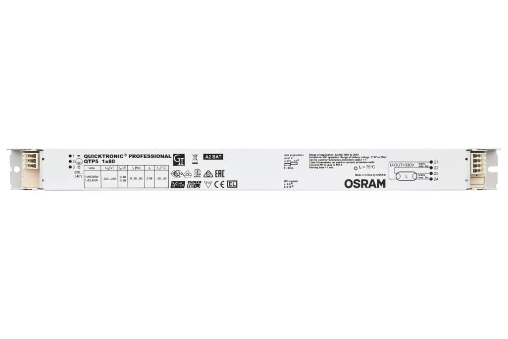 Výhody produktu: Dlouhá životnost světelného zdroje. Žádné nepříznivé dopady při častém zapínání a vypínání. Perfektní zapínání světelného zdroje pro instalace s pohybovými čidly. Automatický restart po výměně světelného zdroje. Systém certifikovaný podle VDE/VDE pro EMC. Velmi vysoká energetická účinnost díky odpojovací technologii. Vlastnosti produktu: Napájecí napětí: 220…240 V. Síťové napětí: 198 – 264 V. Kmitočet: 0 Hz | 50 Hz | 60 Hz. Zapnutí světelného zdroje s optimálním předehříváním vlákna. Životnost: až 100.000 h (teplota Tc = 65 °C, četnost poruch max. 10 %). Index energetické účinnosti EEI: A2 BAT. Automatické vypnutí vadných světelných zdrojů a zdrojů na konci života (EoL T.2). Bezpečnost: podle EN 61347-2-3. Provoz světelného zdroje: po EN 60929. Druh použití: Systémy nouzového osvětlení podle EN 50172 / DIN VDE 0108-100. Průmysl. Společné kanceláře, chodby a skladovací prostory. Veřejné budovy. Sportovní haly a továrny. Světelné pásy. Vhodné pro nouzové osvětlení (provoz na stejnosměrný proud). Modernizace stávajících systémů.