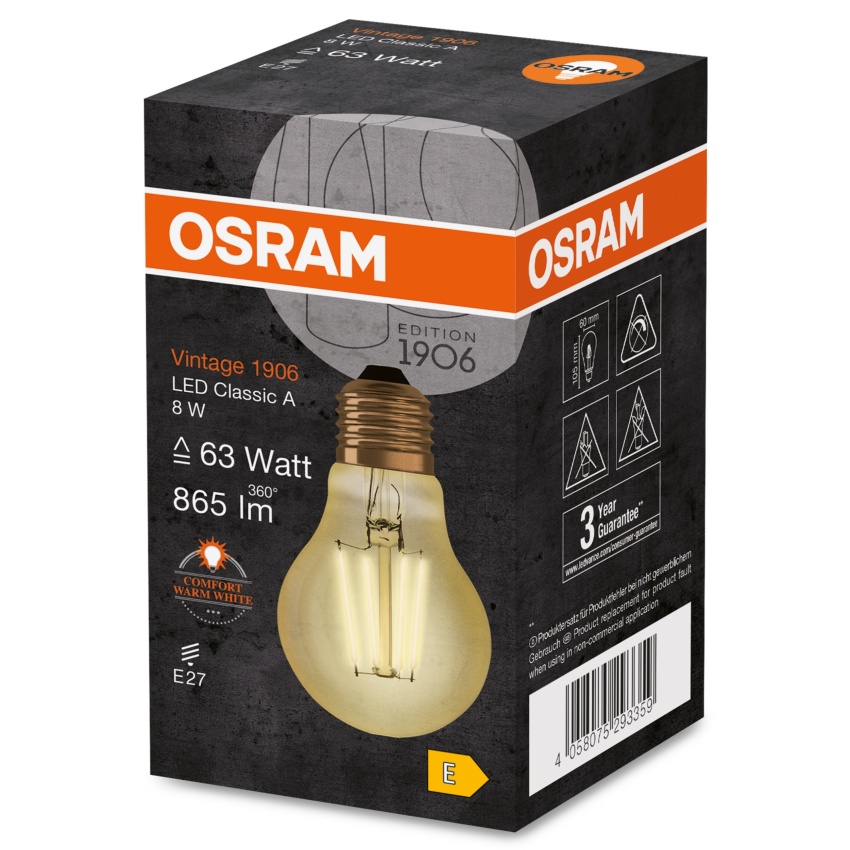 OSRAM ZDROJ LED VINTAGE 1906 CLA68 8W/825 230VFILGDE27FS1OSRAM