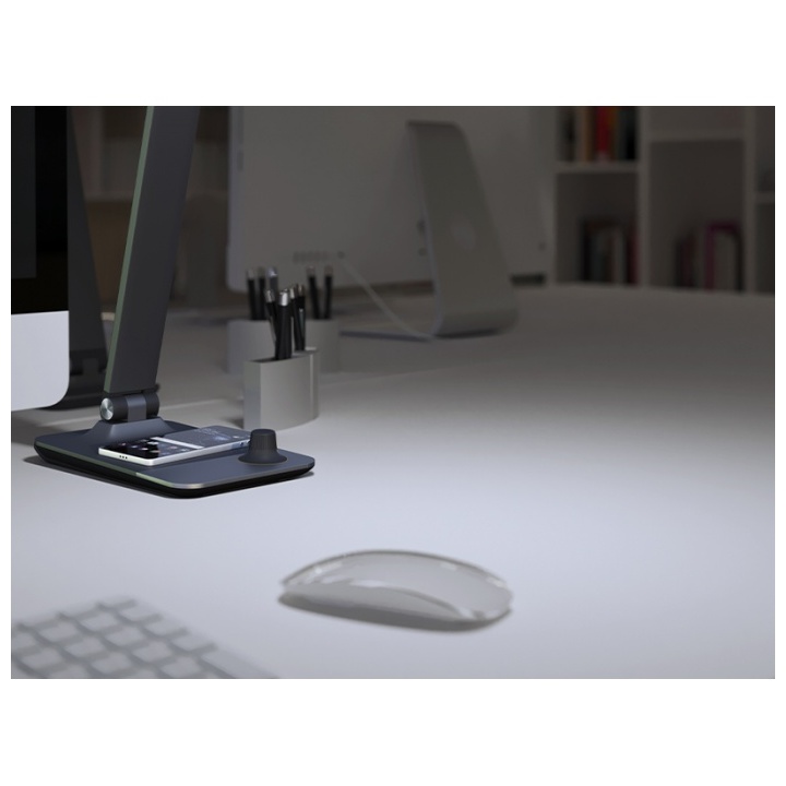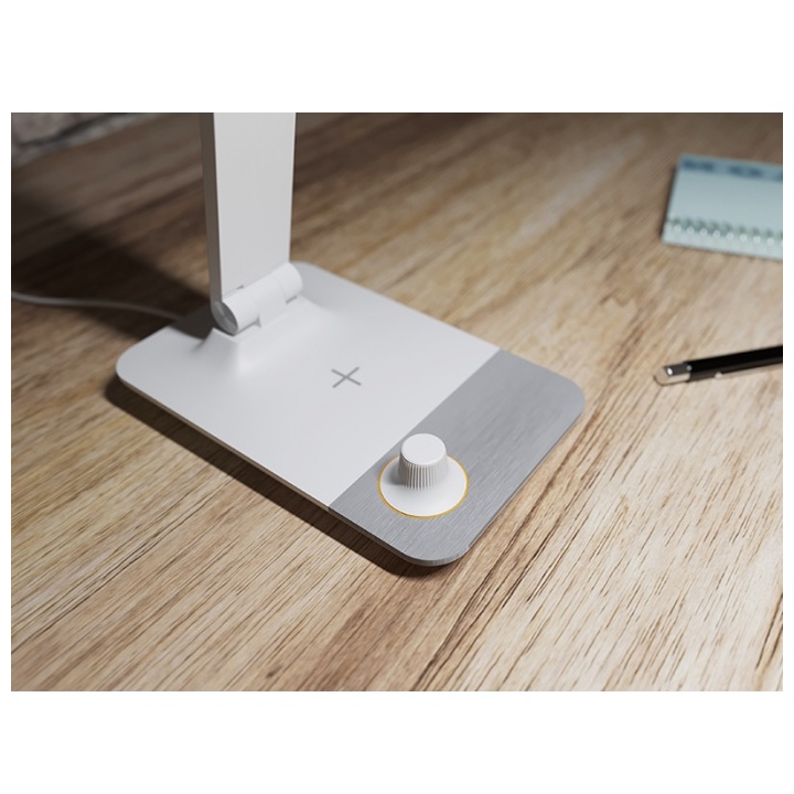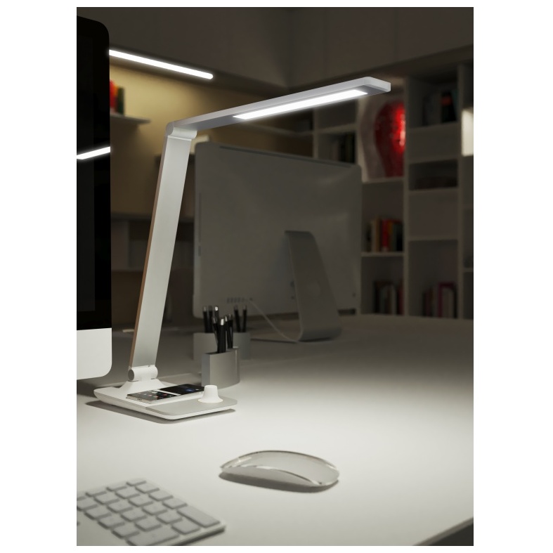 - Elegantni stolní LED lampička s integrovanou bezdrátovou nabíječkou v podstavci.