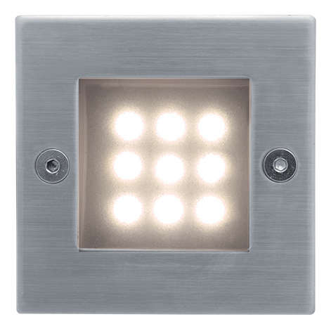 Moderní vestavné LED svítidlo s kovovým rámečkem, vhodné jak do interiérů, tak exteriérů. Svítidlo zvýrazní celý objekt. Doporučuje se zapojit za soumrakový spínač pro automatické spínání. Vyzařovací úhel 120°.