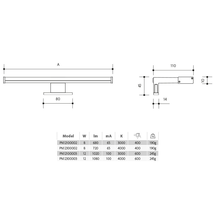 LED svítidlo na zrcadlo do koupelny ARVEN 12W IP44 - neutrální