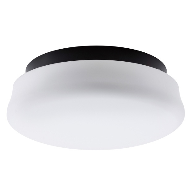 Černé přisazené žárovkové svítidlo ON/OFF a skleněné stínidlo TRIPLEX OPAL.