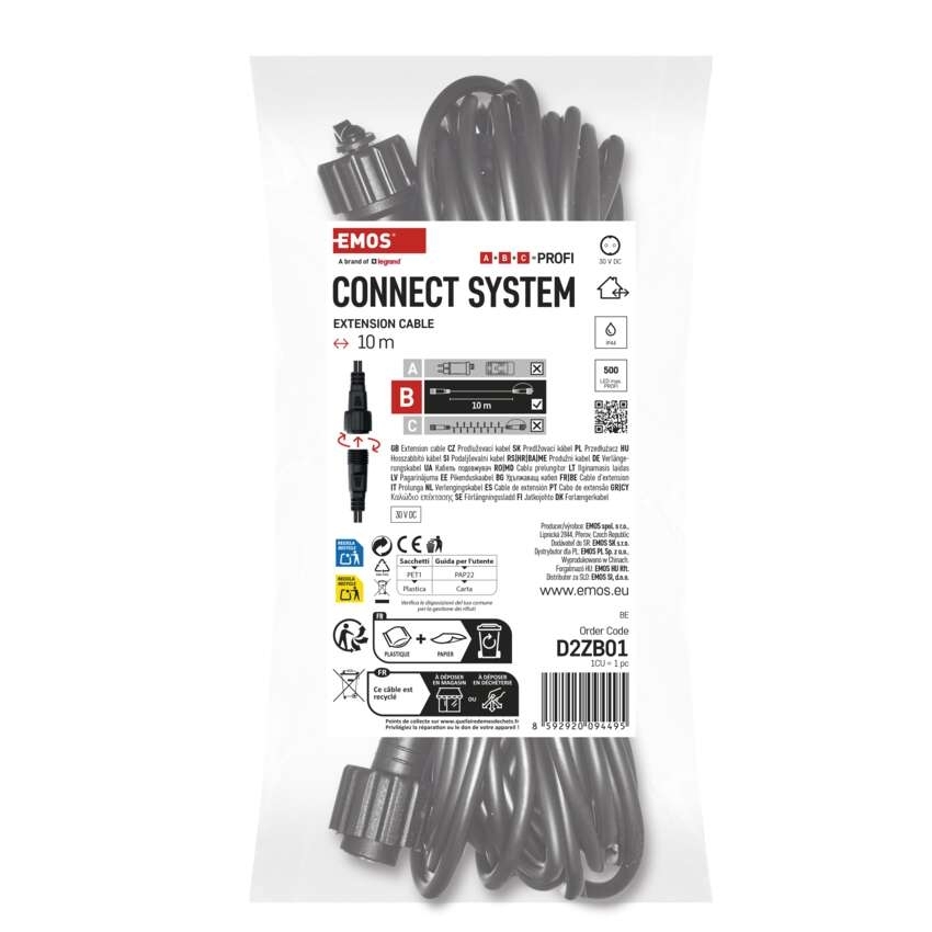 Prodlužovací kabel EMOS D2ZB01 je ideální řešení pro rozšíření délky spojovacích řetězů Profi. Díky délce 10 metrů vám umožní snadné propojení i na větší vzdálenosti, a to jak v interiéru, tak i ve venkovních podmínkách. Kabel je vyroben v černém provedení, které nenaruší celkový vzhled vaší světelné instalace a zaručuje praktické a univerzální použití.