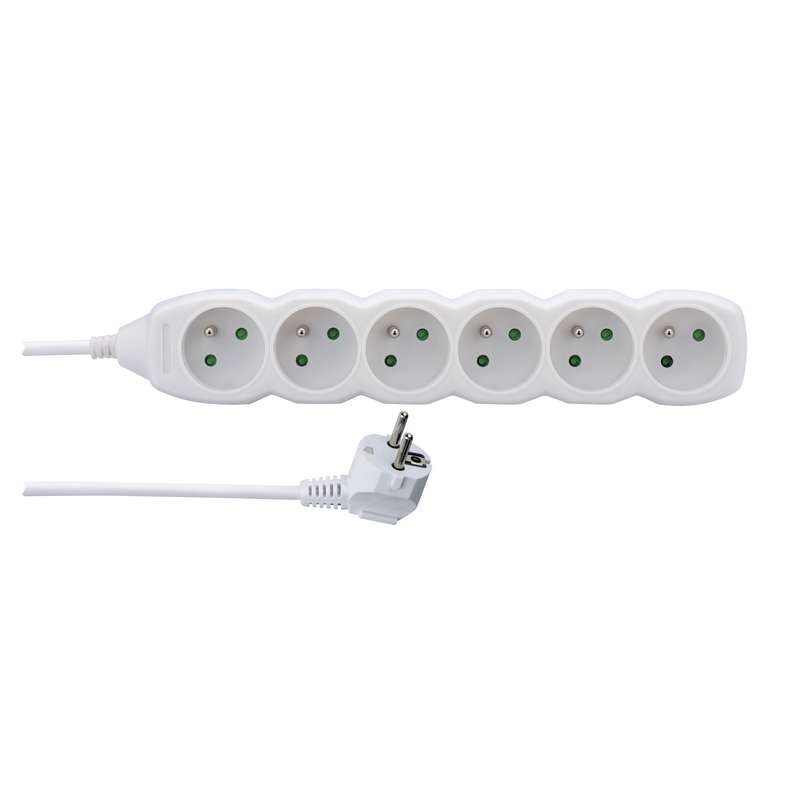 Prodlužovací kabel s 6 zásuvkami. Délka prodlužovacího kabelu je 2 m. Prodlužovací kabel nemá vypínač. Prodlužovací kabel má všestranné využití v domácnosti. Barevné provedení prodlužovacího kabelu je bílá.
